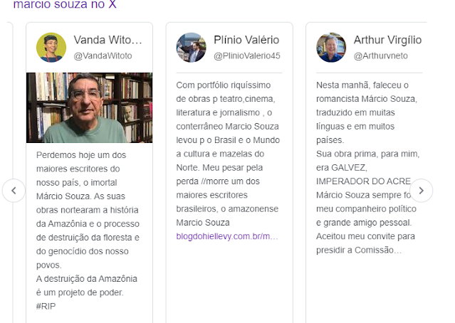 Na madrugada desta segunda-feira, dia 12 de agosto de 2024, morreu o escritor e dramaturgo Márcio Souza, aos 78 anos, autor das obras, dentre outras, de Mad Maria, A caligrafia de Deus, Galvez, o imperador do Acre e A paixão de Ajuricaba.